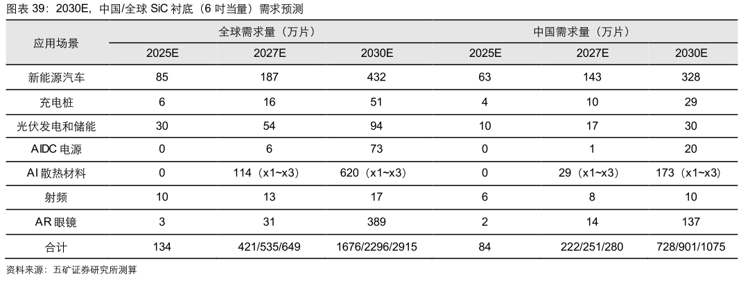据测算,2030年全球新能源车领域SiC衬底需求达432万片,中国328万片。