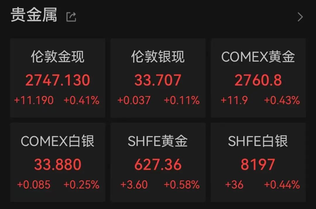此外,黄金在回调之后重拾升势,收盘翻红。