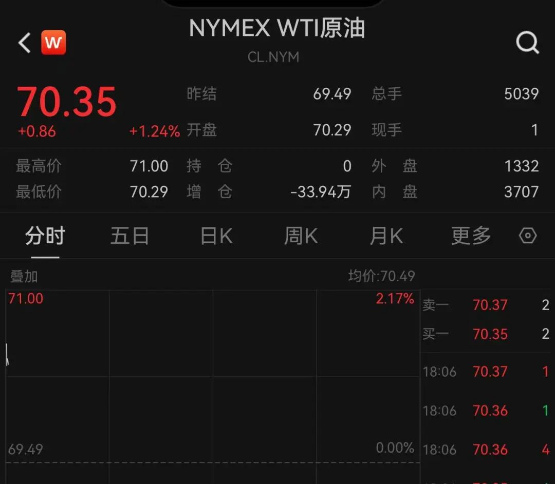 11月4日早上,国际原油大幅高开。WTI原油一度涨超2%。