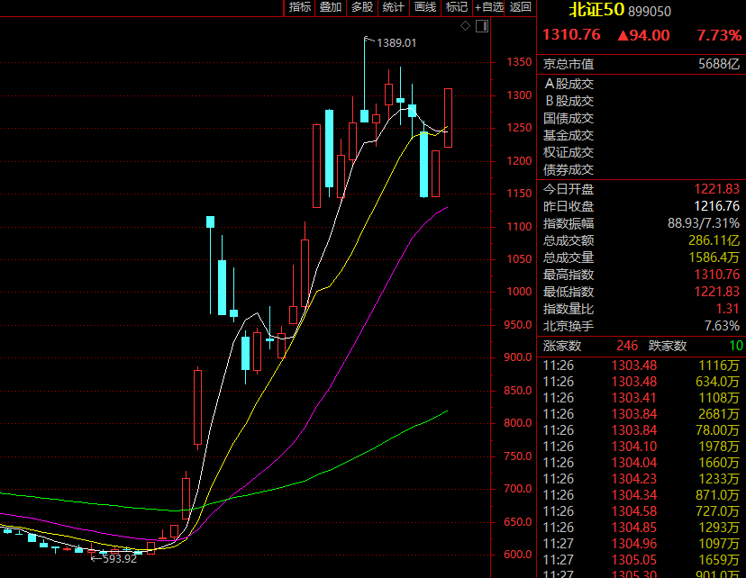 今日早盘,A股再度强势上攻,科技成长股继续领涨,北证50指数飙涨近8%,创业板指、科创50指数也均涨4%左右,沪深300指数收复4000点大关,上证50也重新站上2700点。