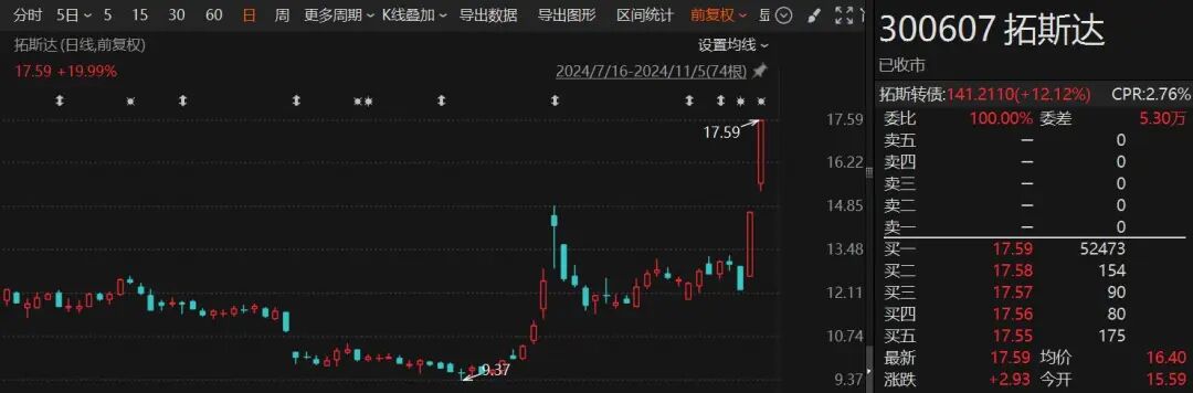 拓斯达近两个交易日完成两个涨幅达20%的“大号涨停”。公司在10月底曾宣布,拟成立控股子公司开展通用机器人“感-算-控”一体化高性能运动控制平台的相关研发工作。
