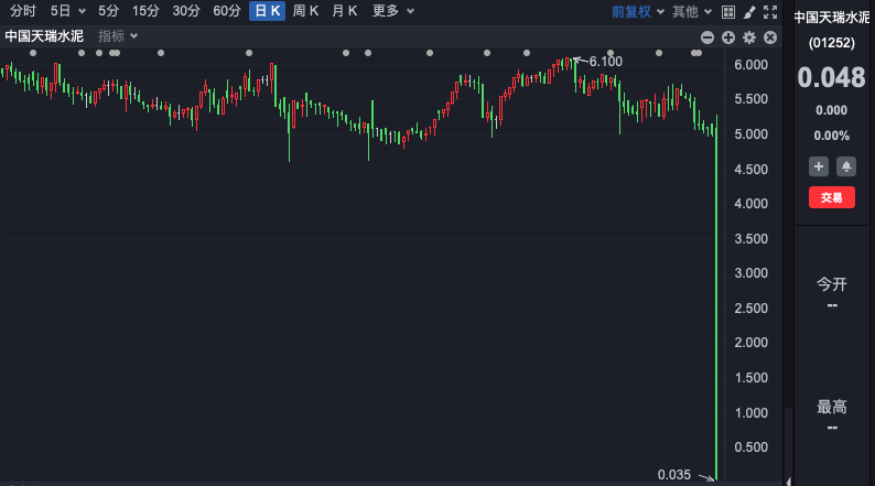 由于迟迟未能披露中期业绩,港股公司天瑞水泥(01252.HK)已行至退市边缘。