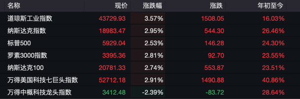 特朗普胜选后,昨夜美股暴涨,主要股指创下历史新高。