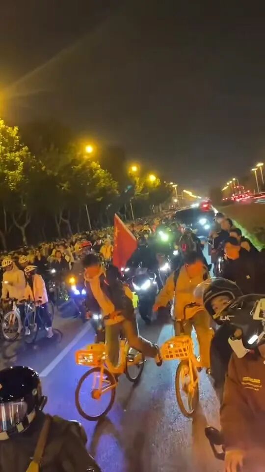8日晚间,记者在郑州市区看到,大批青年骑着共享单车,结伴由西向东行驶。还有人群正在搜集道旁所剩不多的单车,准备组队出行。