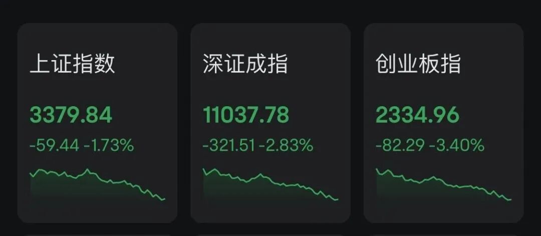 今日,A股深度调整,创业板指、科创50指数均跌超3%,上证指数跌破3400点,沪深300也失守4100点。超4900只个股下跌,市场成交萎缩至1.87万亿元,此前连续7个交易日成交超2万亿元。