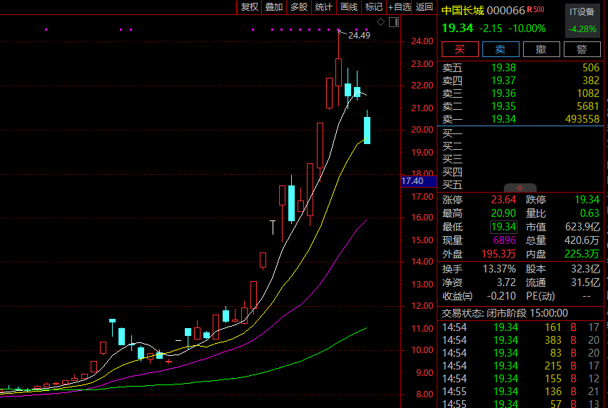 市场焦点方面,前期爆炒的热门股大面积退潮,红宝丽、中国长城、中国卫通、海立股份、黑芝麻等逾40股跌停或跌超10%,其中26只跌停。此外,聚星科技、长盈通、纳科诺尔、唯赛勃等盘中也激烈震荡。