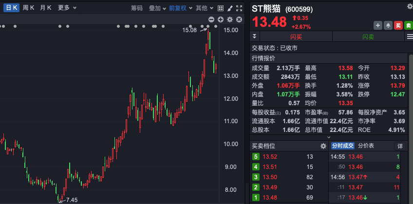 年底将近,烟花爆竹热度攀升,“烟花第一股”ST熊猫(600599)也受到了资本的青睐。自7月中旬以来,公司股价累计涨幅逾70%。