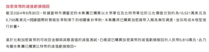 美图公司今年半年报显示,截至2024年6月30日,根据当时市价厘定的已购买以太币单位及比特币单位的公允价值分别约为1.05亿美元及5795万美元。