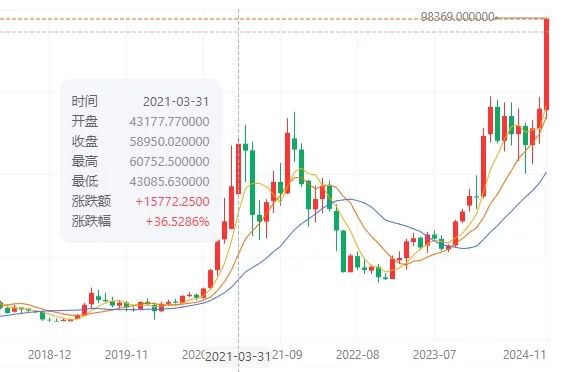 随着特朗普当选下一届总统,比特币开始了一轮大涨行情,不断创出新高。