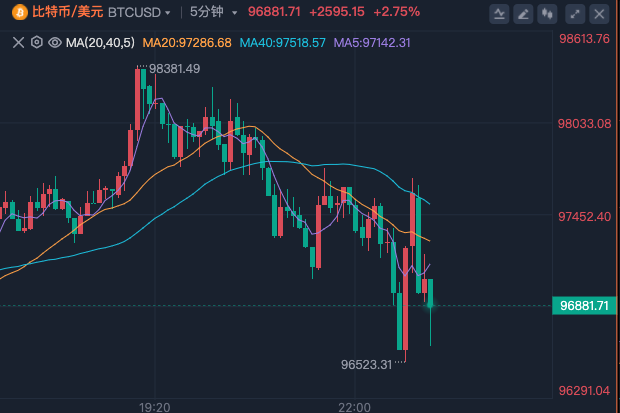 比特币在突破98000美元之后也出现跳水,短线一度跌近2000美元。