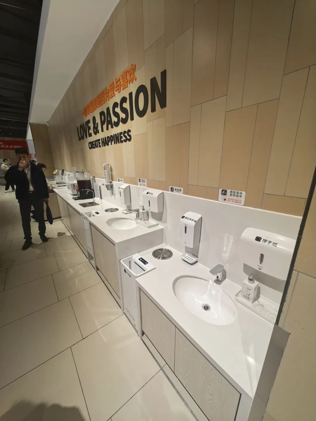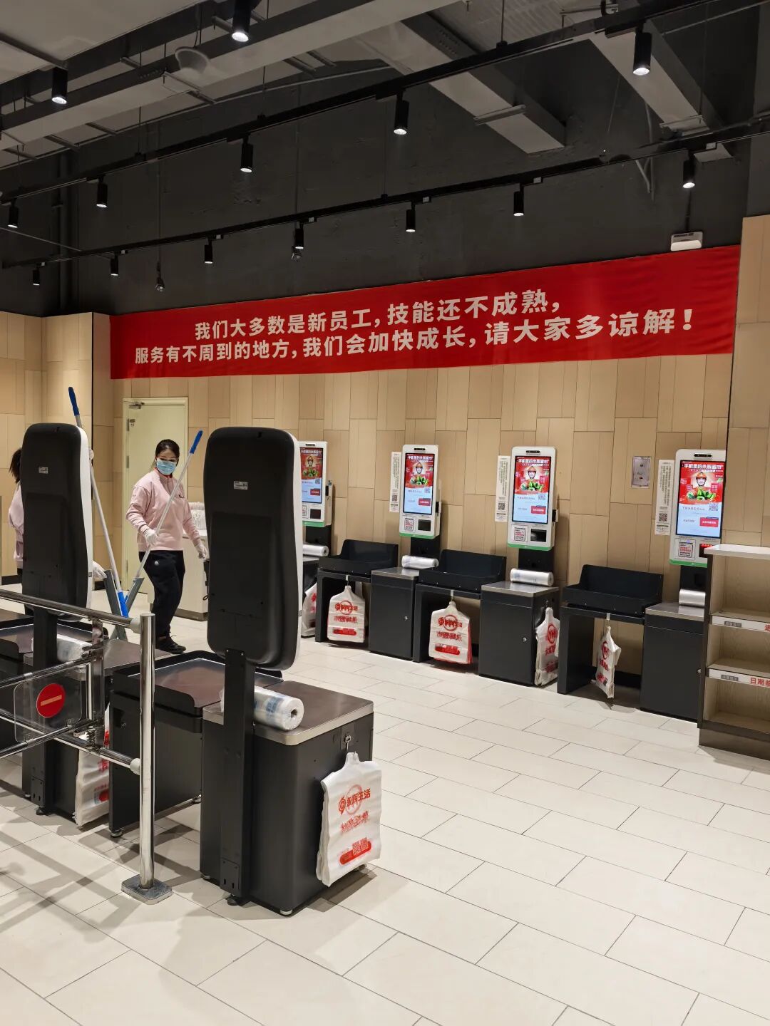 店内装修风格与陈列也均与前三店一致,对比传统超市,调改店在出口处增设了多项便民设施,如洗手台、微波炉、打包处等,货架标语与提示处处彰显贴心服务理念。