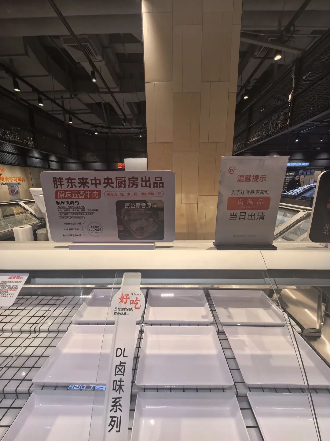 11月28日,证券时报·e公司记者提前探访门店看到,对比此前已在郑州调改的三家门店,龙湖锦艺城店依然延续了“胖东来”特色,货架上已陈列了众多胖东来自有品牌商品。