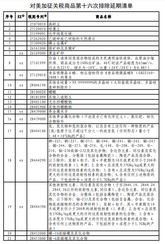 现将有关事项公告如下:自2024年12月1日至2025年2月28日,对附件所列商品,继续不加征我为反制美301措施所加征的关税。