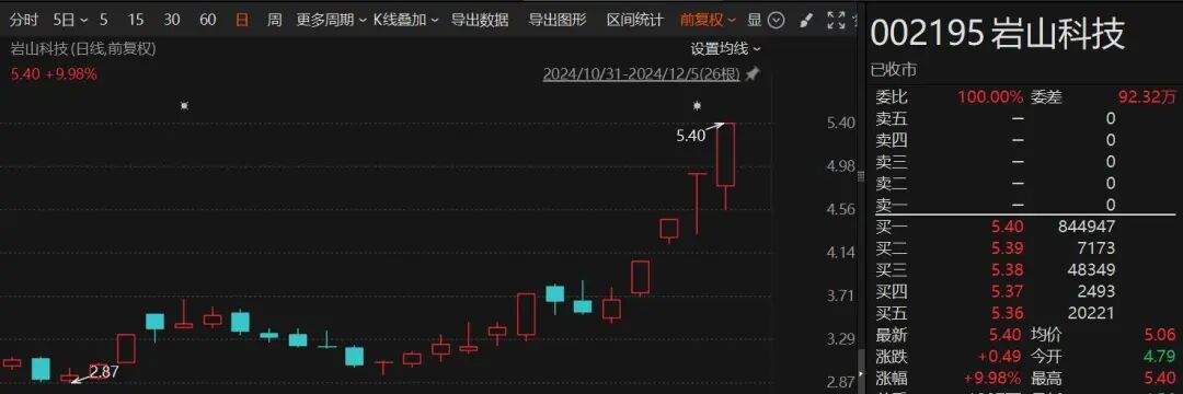 四连板岩山科技(002195)公告称,未发现近期公共传媒报道了可能或已经对本公司股票交易价格产生较大影响的未公开重大信息;公司已披露的经营情况及内外部经营环境未发生重大变化;经核查,公司、控股股东及实际控制人不存在关于本公司的应披露而未披露的重大事项,或处于筹划阶段的重大事项。