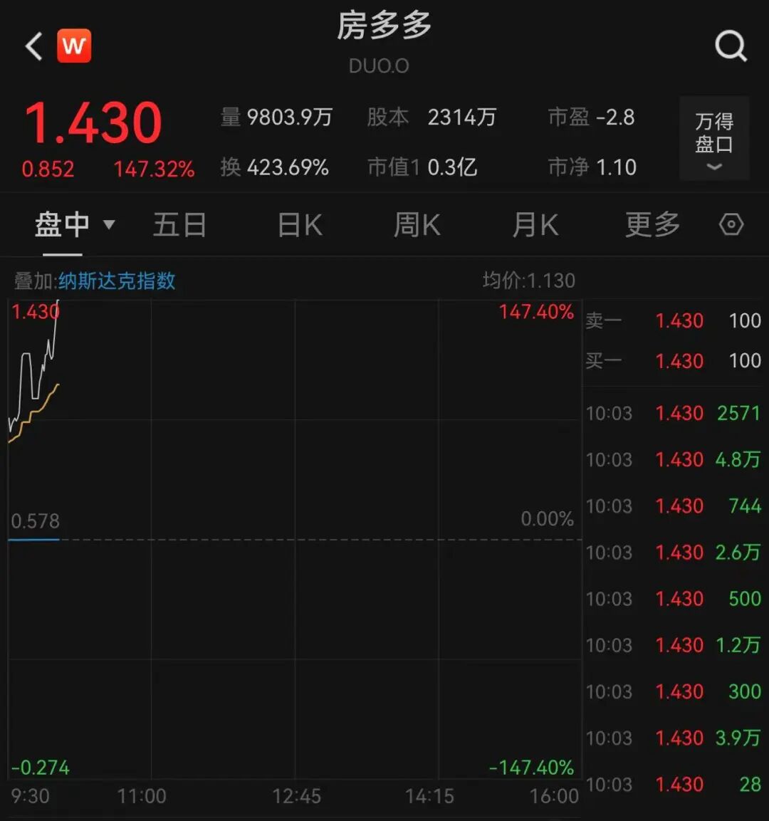 热门中概股普涨,房多多盘中一度涨超147%,多次触发熔断。另外,哔哩哔哩、富途控股涨超11%,京东涨逾8%。