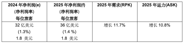 按照业内判断,由于航油价格下降和效率提高,预计2025年整体财务业绩将有所改善。同时预计航空公司将耗尽疫情时结转的税收减免,2025年税率将因此上升。
