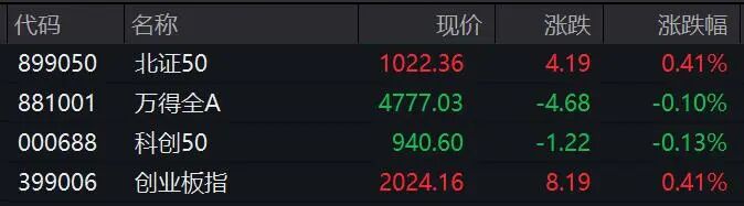 盘面上,医药、业绩预增、能源金属、光伏等板块涨幅居前,专业零售、AI眼镜、酒店餐饮、预制菜等板块跌幅居前。