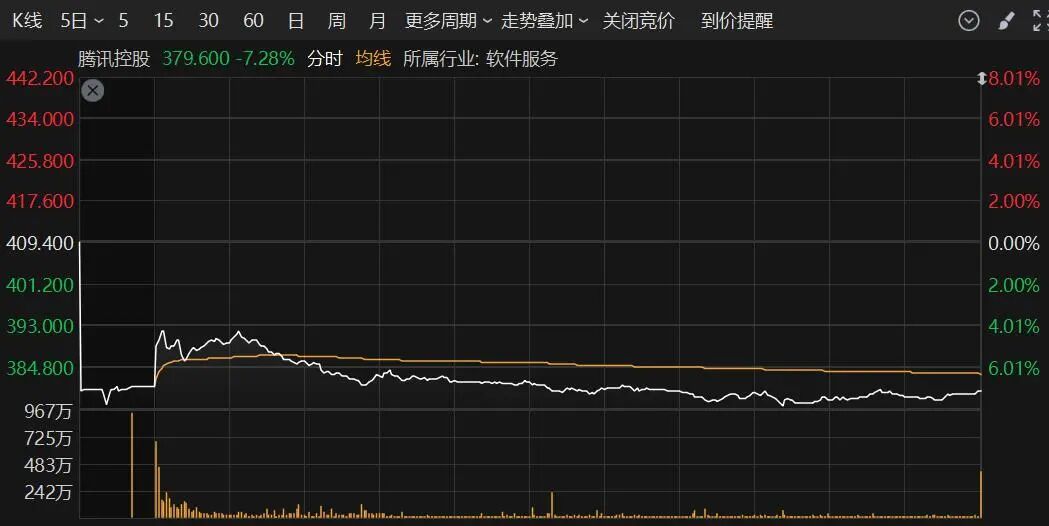 今日港股腾讯控股在二级市场大跌,全天收跌超7%。
