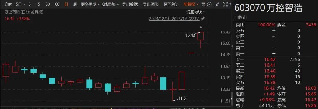 1月9日,盘中几度炸板的万控智造(603070)最终以涨停收盘,迎来三连板。当天晚间,公司发布股票交易风险提示公告,提醒投资者关注二级市场交易风险,理性投资。