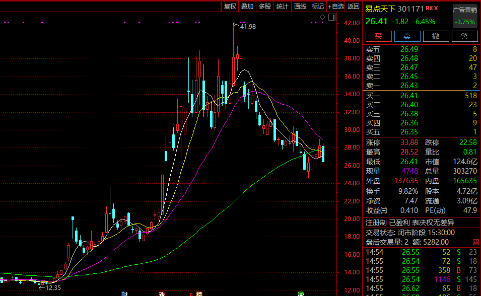 易点天下是本周最受机构青睐的个股,周内共有138家机构“叩门”该公司。易点天下是一家智能营销服务公司,主营业务包括效果广告服务、品牌广告服务和头部媒体账户管理服务等。