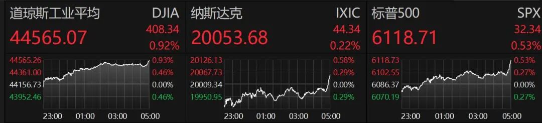 隔夜欧美股市全线上涨,美股标普500指数创出历史新高,中概股尾盘拉升。