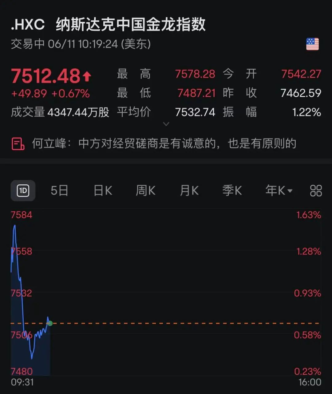 中概股集体飘红,截至发稿,纳斯达克中国金龙指数涨0.67%。