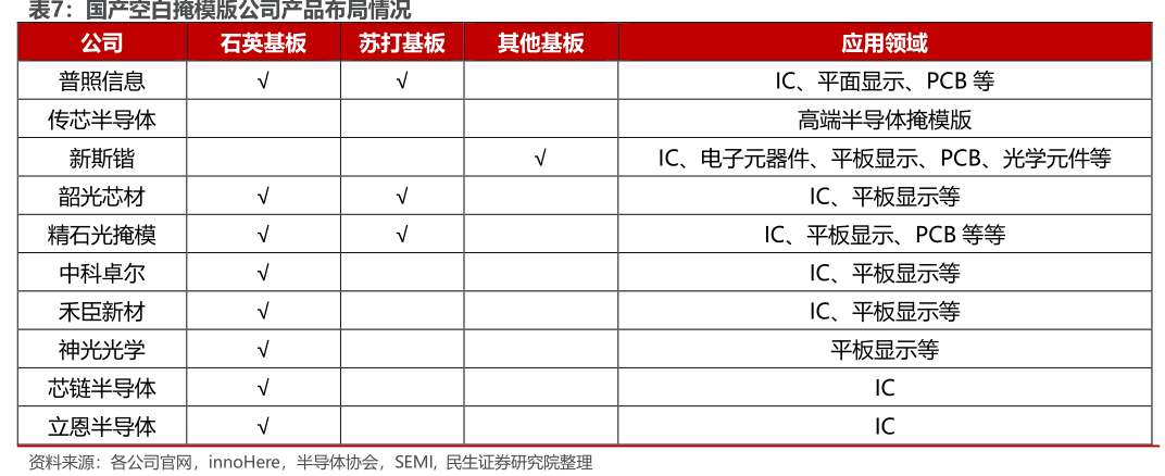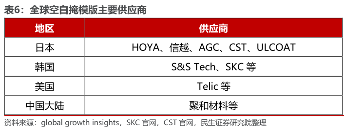 关注:聚和材料(拟通过收购SKE布局空白掩模版业务)、龙图光罩、路维光电、清溢光电等。