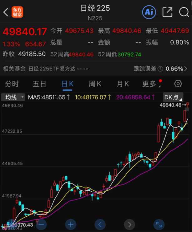 10月21日,日经225指数高开,截至发稿涨超1%。