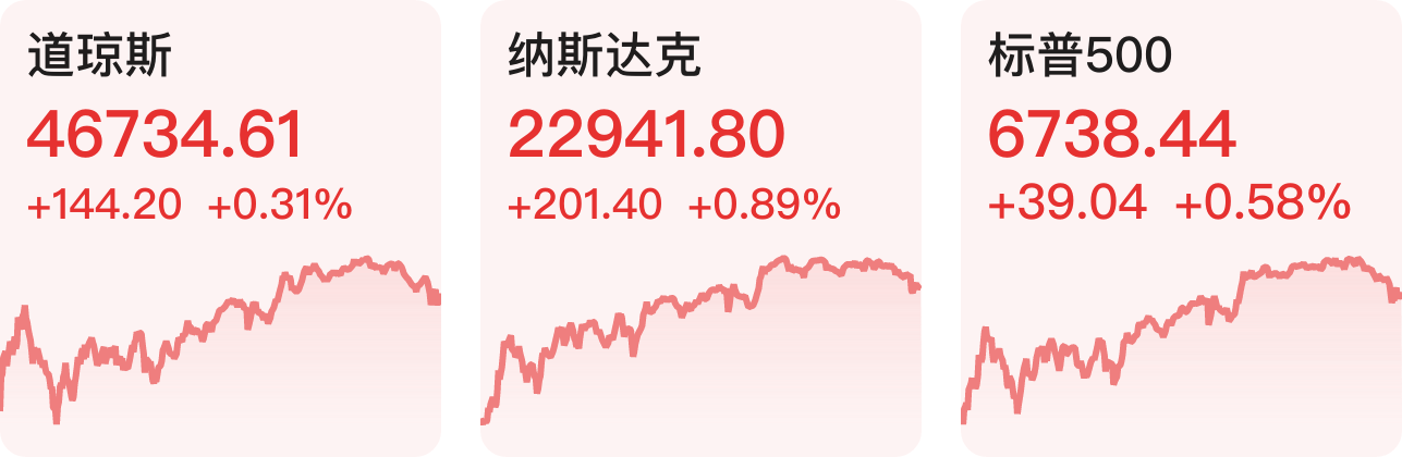 当地时间10月23日,美股三大指数集体收涨,纳指涨0.89%,标普500指数涨0.58%,道指涨0.31%。大型科技股多数上涨,英特尔涨超3%,特斯拉涨超2%,亚马逊、英伟达涨超1%。纳斯达克中国金龙指数收涨1.66%,热门中概股多数上涨,阿里巴巴涨超3%,百度、金山云、京东涨超2%,理想汽车、网易涨超1%。