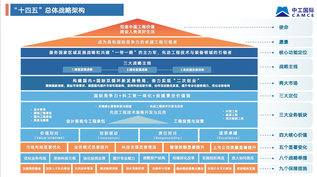 “十四五”时期,中工国际重新划分业务板块,确立三大战略主线。坚持做“难而正确”的事,成为公司运营的重要内核。基于此,中工国际在完全竞争的海外工程市场中,走出一条聚焦细分赛道的差异化发展路径。