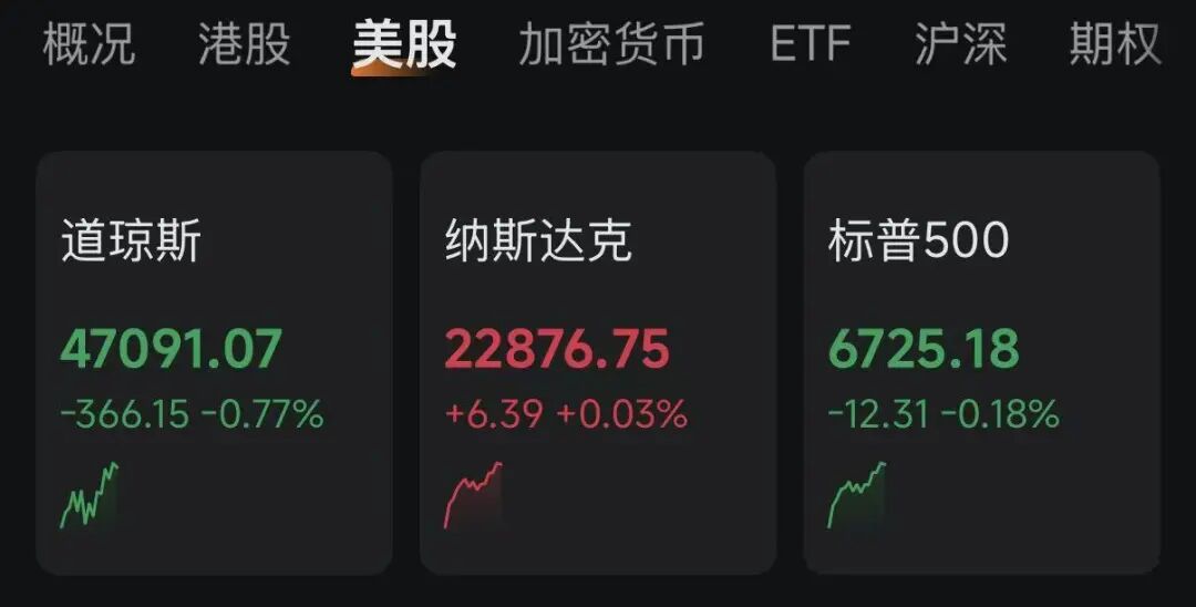 11月14日晚间,美股开盘后集体下跌,不过,纳指与标普500指数跌幅迅速收窄,其中纳指翻红,而道指跌幅仍较大。美联储官员再度对12月降息“鹰派”表态。此外,据央视新闻报道,瑞士联邦委员会宣布,美国对瑞士产品征收的关税从目前的39%降至15%。