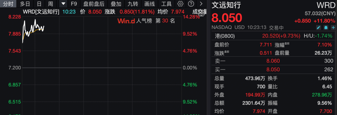 大全新能源、趣店、阿里巴巴等涨超5%。蔚来、金山云等涨超4%,小鹏汽车、搜狐等涨逾2%。