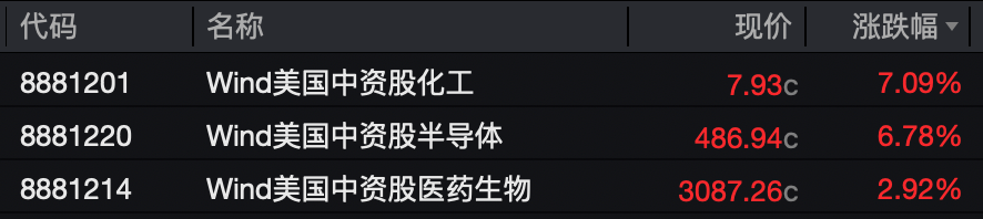 中概股涨跌不一,纳斯达克中国金龙指数涨幅为0.4%。中资股中,化工、半导体、医药生物板块领涨。