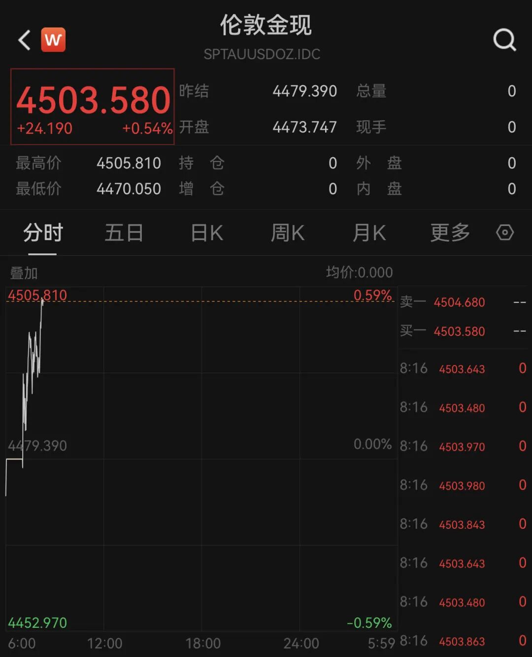 与此同时,国际金价也在上涨。截至发稿,伦敦金现重回4500美元/盎司上方,现涨0.53%;COMEX黄金上涨0.55%,报4528美元/盎司。