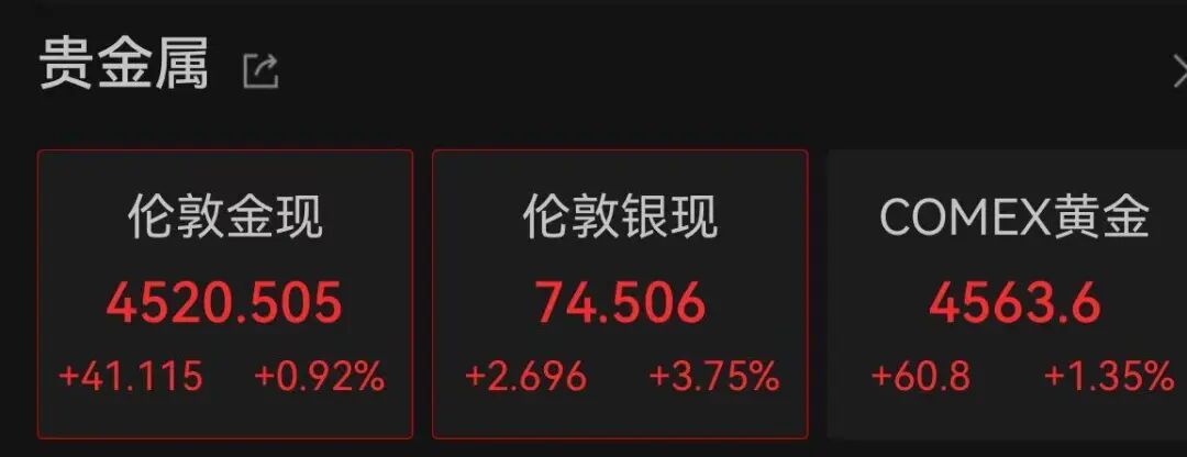 黄金、白银则继续狂飙,截至发稿,现货黄金涨近1%,现货白银大涨逾近4%。