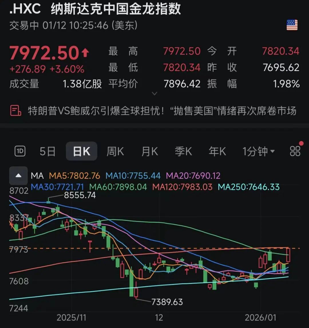 晚间(1月12日),美股三大指数开盘后下跌,中概股则直线拉涨。