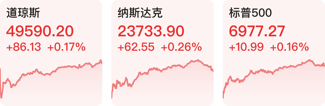 美股三大指数集体收涨,道指涨0.17%,纳指涨0.26%,标普500指数涨0.16%,道指与标普500创历史收盘新高。大型科技股涨跌不一,谷歌涨1%,苹果、特斯拉小幅上涨;英特尔跌超3%。热门中概股多数收涨,纳斯达克中国金龙指数涨4.26%,阿里巴巴涨超10%,哔哩哔哩涨近9%,小鹏汽车涨超8%,百度、微博涨超6%。