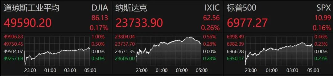 1月12日美股三大指数集体收涨,道琼斯指数涨0.17%创收盘新高,标普500指数涨0.16%创收盘新高,纳斯达克综合指数涨0.26%。