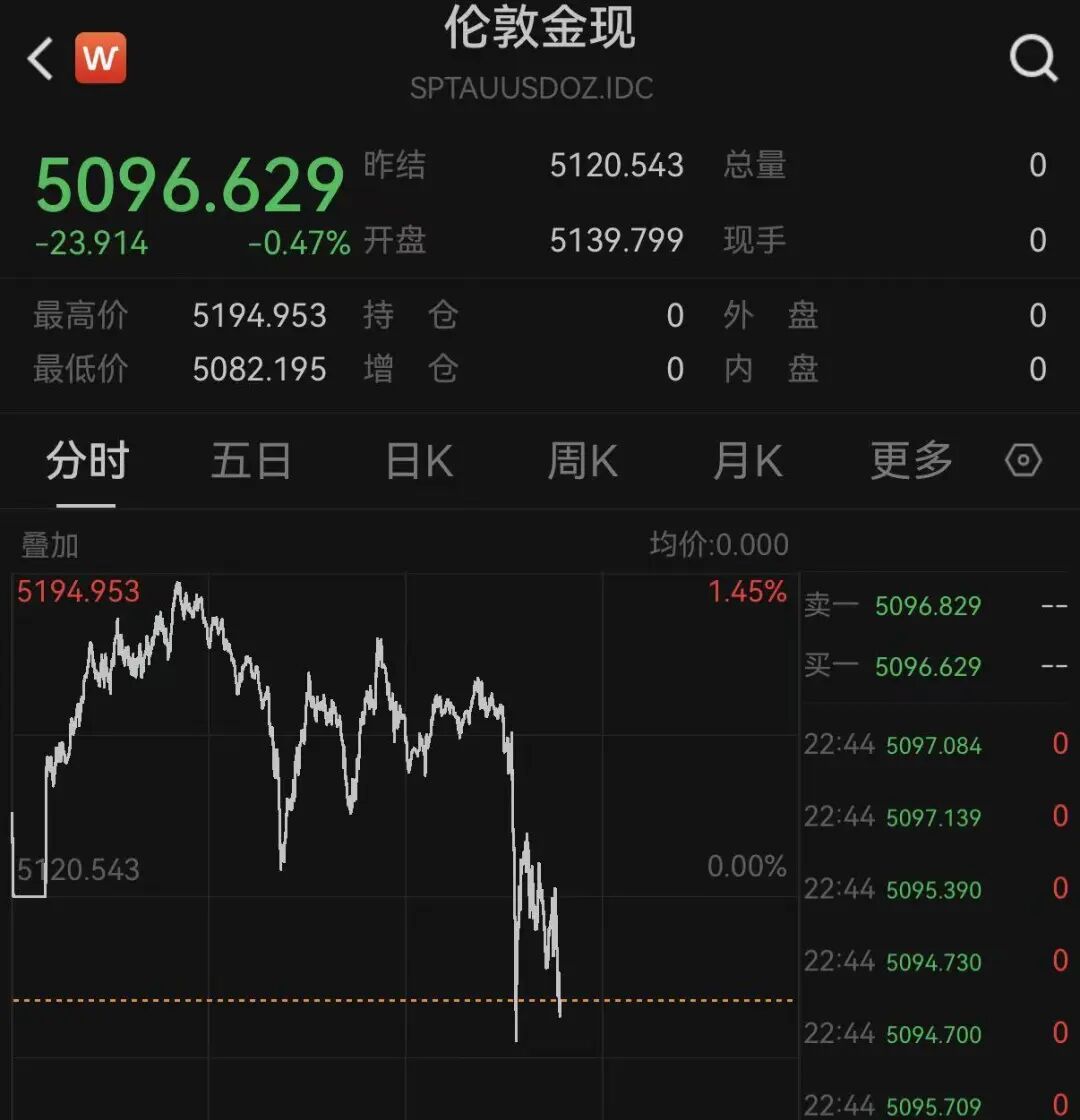 截至发稿,现货黄金跌破5100美元,现货白银更是跌逾1%。