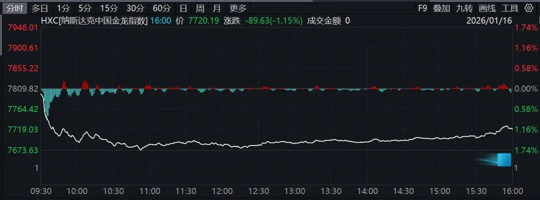 1月16日,美股三大指数集体收跌,纳指跌0.06%,道指跌0.17%,标普500指数跌0.06%。